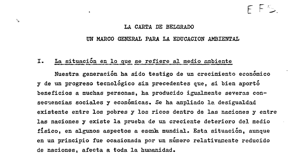 Un dia como hoy en 1975, mediante la Carta de Belgrado, en el Seminario Internacional de Educación Ambiental, se estableció el Dia Mundial de la Educación Ambiental para «promover la concientización, especialmente en niños y la comunidad en general, sobre la protección del medio ambiente y el desarrollo sostenible».